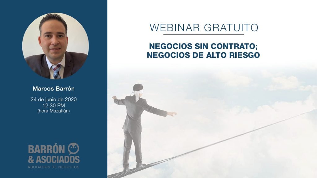 Los invitamos a participar el próximo miércoles 24 de Junio a las 12:30 PM por Zoom, a nuestro webinar gratuito titulado «NEGOCIOS SIN CONTRATO; NEGOCIOS DE ALTO RIESGO»